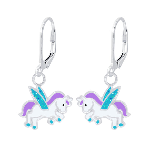 Alle gegevens bekijkenJoy|S - Zilveren eenhoorn bedel oorbellen - leverback sluiting - unicorn met vleugeltjes - kinderoorbellen