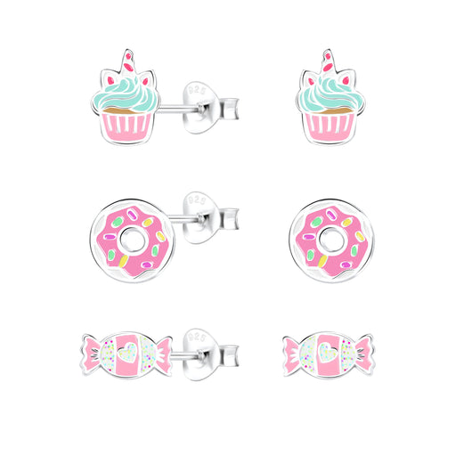 Alle gegevens bekijkenJoy|S - Zilveren oorbellen set - cupcake | donut | snoepje met hartje - 3 paar - kinderoorbellen