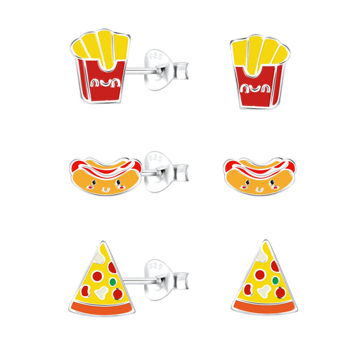 Alle gegevens bekijkenJoy|S - Zilveren oorbellen set - franse frietjes | hotdog | pizza - 3 paar - kinderoorbellen