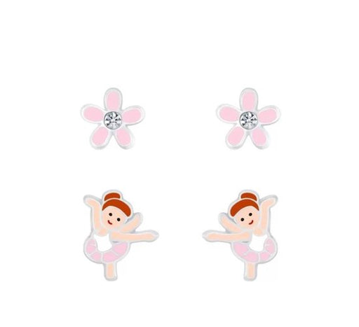 Sterling zilver 925 oorbellen set - 2 paar - Ballerina danseres en bloem met kristalletjes Materiaal: 925 sterling zilver Afwerking: E-coat Afmetin...