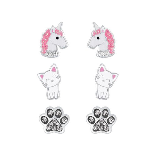 Alle gegevens bekijkenJoy|S - Zilveren oorbellen set 3 paar | Dierenpoot | Eenhoorn/ unicorn | Kat/ poes