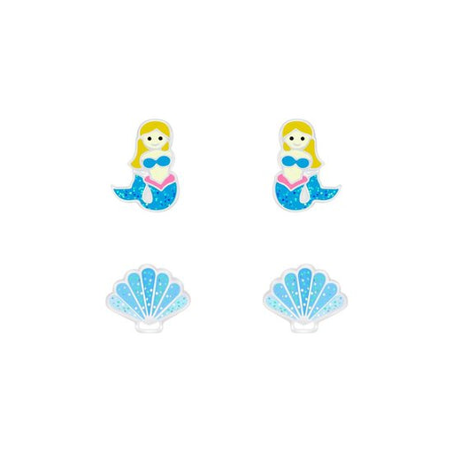 Sterling zilver 925 oorbellen 2 paar: Zeemeermin met blauwe glitter, Schelp met glitter Materiaal : 925 sterling zilver Afwerking : E-coat Afmeti...