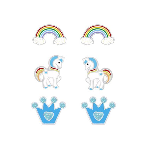Alle gegevens bekijkenJoy|S - Zilveren oorbellen set 3 paar | Kroontje | Pony/ eenhoorn | Regenboog