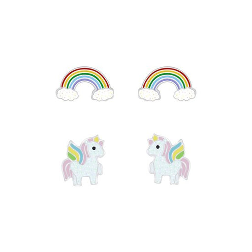 Sterling zilver 925 oorbellen 2 paar: Regenboog met glitter wolkjes, Eenhoorn met subtiele glitter. Materiaal : 925 sterling zilver Afwerking : E-...