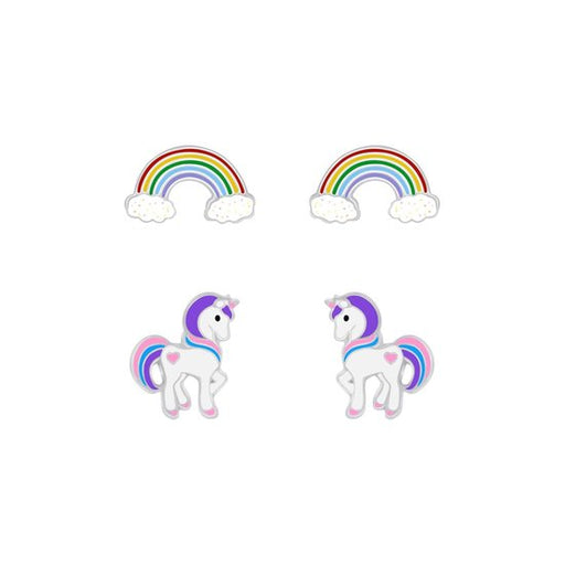 Alle gegevens bekijkenJoy|S - Zilveren oorbellen set 2 paar | pony / eenhoorn | regenboog