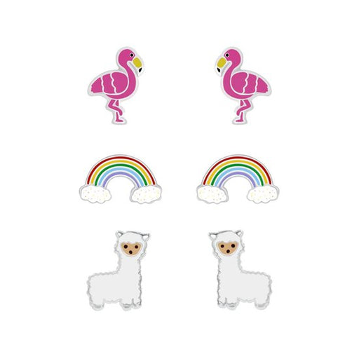 Alle gegevens bekijkenJoy|S - Zilveren oorbellen set 3 paar | Alpaca/ lama | Regenboog | Flamingo