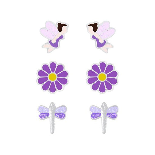 Alle gegevens bekijkenJoy|S - Zilveren oorbellen set - 3 paar | Bloem | Elfje | Libelle - lila paars