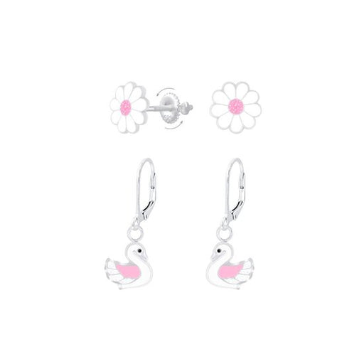 Alle gegevens bekijkenJoy|S - Zilveren oorbellen set 2 paar: Zwaan bedel oorbellen en Bloem oorknoppen - wit roze