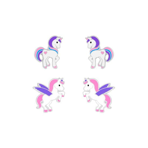 Sterling zilver 925 oorbellen 2 paar: Pony met roze hartje, Eenhoorn met vleugeltjes Materiaal : 925 sterling zilver Afwerking : E-coat Afmetinge...