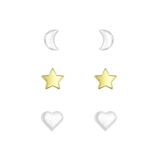 Alle gegevens bekijkenJoy|S - Zilveren oorbellen set | maan | ster (goudplating) | hartje