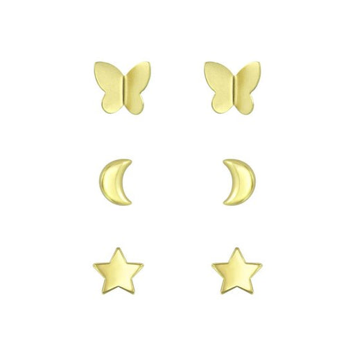 Sterling zilver 925 oorbellen set, 3 paar - goudplating Afmeting vlinder: 7 x 7 mm Afmeting maan: 5 x 6 mm Afmeting ster: 5 x 5 mm Materiaal: Ster...