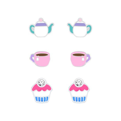 Alle gegevens bekijkenJoy|S - Zilveren oorbellen set - 3 paar - tea time - theepot - theekopje - cupcake