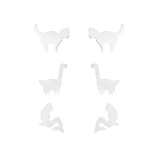 Alle gegevens bekijkenJoy|S - Zilveren oorbellen set 3 paar | kat/ poes | dinosaurus | zeemeermin