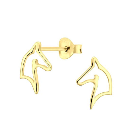 Sterling zilver 925 paardenhoofd oorbellen - goldplated manen. Materiaal : 925 sterling zilver Plating : Goldplated, E-coat Grootte: 7 mm x 7 mm Ve...