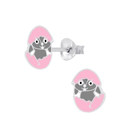 Sterling zilver 925 Paasei oorbellen roze met grijs konijntje Design grootte: 6 mm x 8 mm Bewerking: E-Coat Materiaal: Sterling zilver 925 Verpak...