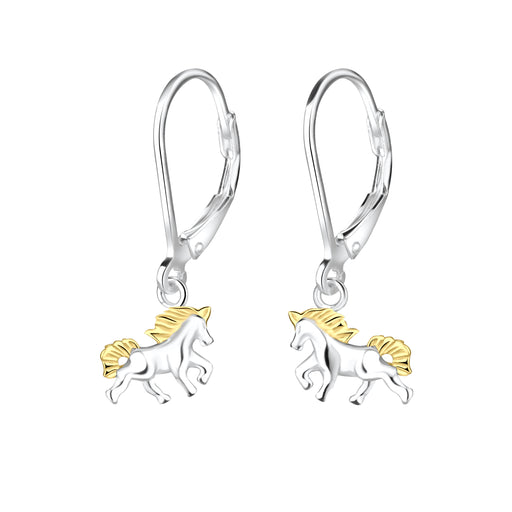 Sterling zilver 925 Paard oorbellen met goldplated manen en staart. De oorbellen hebben een chique leverback sluiting, ook om verlies te voorkomen ...