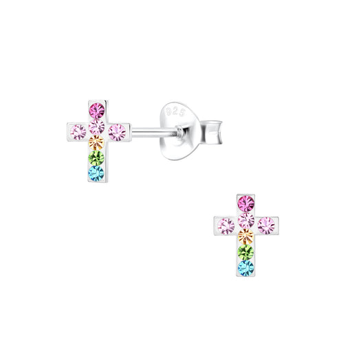Alle gegevens bekijkenJoy|S - Zilveren petit kruisje oorbellen - 5 x 6 mm - kristal multicolor