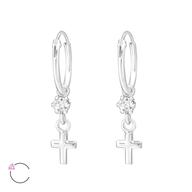 Sterling zilver 925 kruis oorbellen met La Crystale kristal. Afmeting totaal: 0.5 x 1.8 cm Materiaal: Sterling zilver 925 Afwerking: E-coat Verpak...