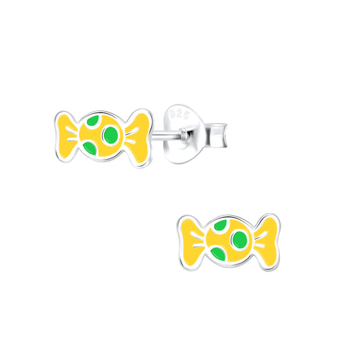 Alle gegevens bekijkenJoy|S - Zilveren snoepje oorbellen - geel met blauwe stipjes - 8 x 5 mm