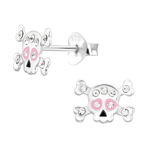 Sterling zilver 925 skull / doodskop oorbellen. Design grootte: 9 x 6 mm Bewerking: E-Coat Materiaal: Sterling zilver 925 Steensoort: Kristal Verpa...