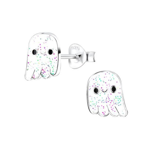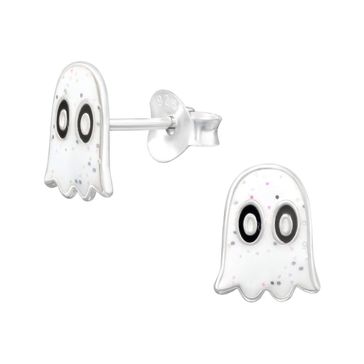 Alle gegevens bekijkenJoy|S - Zilveren spook oorbellen - 7 x 8 mm - wit - halloween oorknoppen