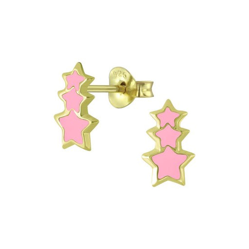 Alle gegevens bekijkenJoy|S - Zilveren ster oorbellen - 6 x 10 mm - 3 sterren roze - goudplating
