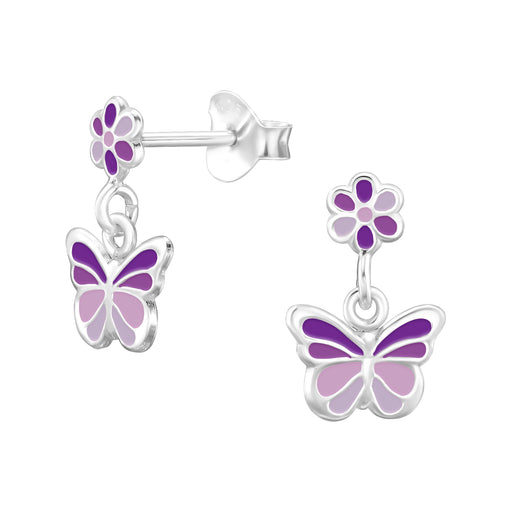 Joy|S - Zilveren bloem met vlinder bedel oorbellen - 8 x 12 mm - paars lila zilver - kinderoorbellen