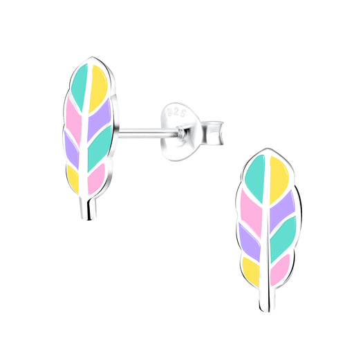 Alle gegevens bekijkenJoy|S - Zilveren veer bedel oorbellen - veertje multicolor - oorhangers - kinderoorbellen