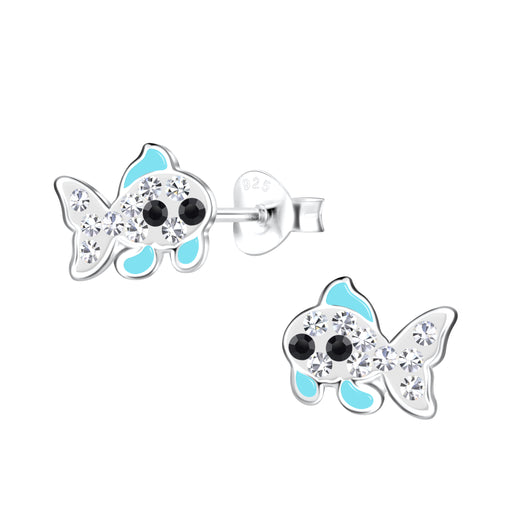 Alle gegevens bekijkenJoy|S - Zilveren vis oorbellen - 7 x 9 mm - blauw - kristal - visje oorknoppen - kinderoorbellen