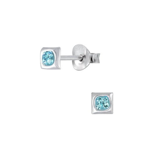 Alle gegevens bekijkenJoy|S - Zilveren vierkant oorbellen 4 mm blauw kristal