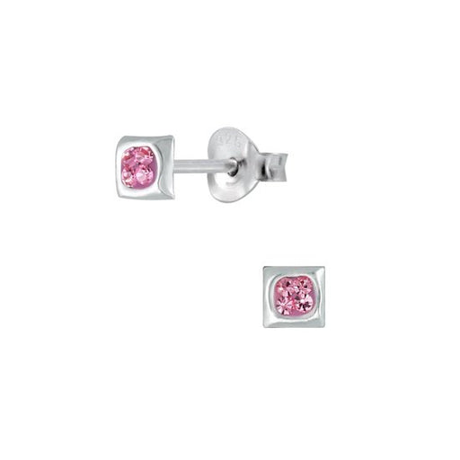 Alle gegevens bekijkenJoy|S - Zilveren vierkant kristal roze oorbellen - 4 mm