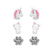 Sterling zilver 925 oorbellen 3 paar: Eenhoorn/ unicorn (met kristal), Dierenpoot (met kristal), witte kat/ poes