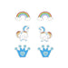 Sterling zilveren 925 oorbellen 3 paar: Kroontje met blauw glitter, Pony/ eenhoorn, Regenboog met glitter wolkjes
