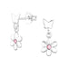 Sterling zilver 925 vlinder met bloem bedel oorbellen - zilver met roze kristalletje.