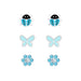 Lieveheersbeestje blauw met glitter, Vlinder blauw, Bloem met blauw kristal.